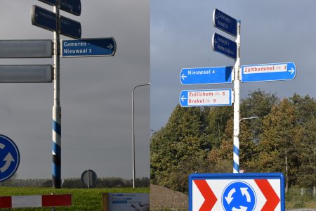NIEUWAAL/GAMEREN – Wie via de Van Heemstraweg op weg is naar Nieuwaal, krijgt op de rotonde van deze weg bij Gameren te zien dat het nog maar drie kilometer is. Vervolgens kom je bij de nieuwe rotonde in Gameren, circa 400 meter verder en dan zou je ervanuit mogen gaan dat de afstand naar Nieuwaal korter geworden is. Dus niet want nu moet je opeens vier kilometer afleggen naar Nieuwaal terwijl de afstand korter geworden is. Een ding is in elk geval zeker, als je de borden blijft volgen kom je vanzelf in Nieuwaal.