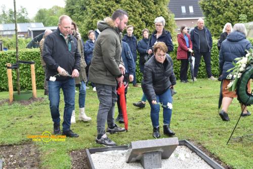 NIEUWAAL – Ondanks dat er veel regen verwacht werd trok de dodenherdenking op de oude begraafplaats in Nieuwaal circa 75 belangstellenden. In Nieuwaal worden jaarlijks bloemen gelegd bij het graf van Jacob Ekelmans. Tijdens een razzia in september 1944, bedoeld om aan arbeidskrachten te komen voor het bouwen van de mini-vesting in Zaltbommel, probeerde hij uit handen van de Duitsers te blijven. Met een kleine groep dorpsgenoten ging hij naar een boomgaard aan de Hogeweg, waar hij zich achter een fruitschuur verschool. Toen hij volgens ooggetuigen achter de schuur vandaan kwam, werd hij door soldaten ontdekt en met gericht vuur doodgeschoten.